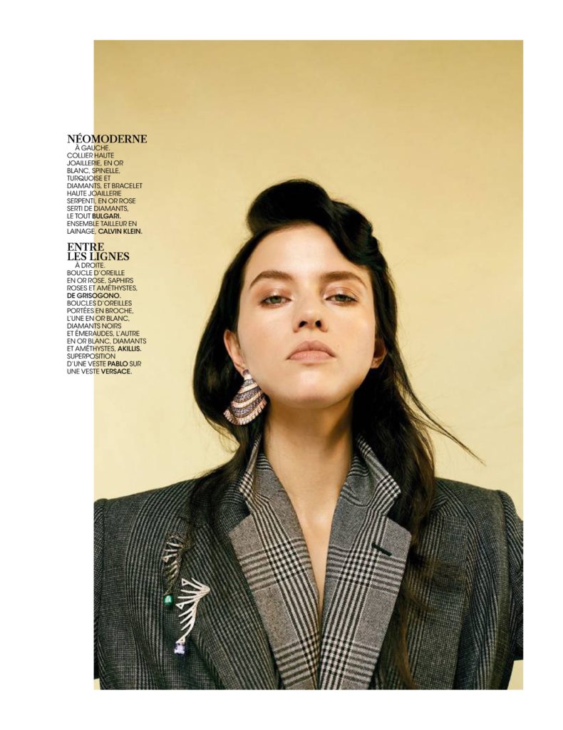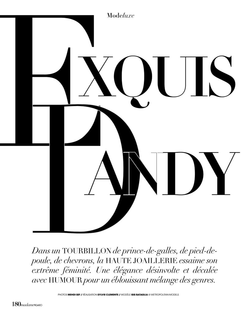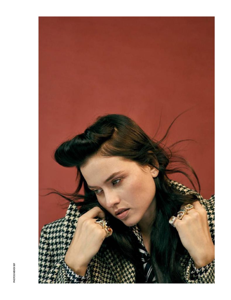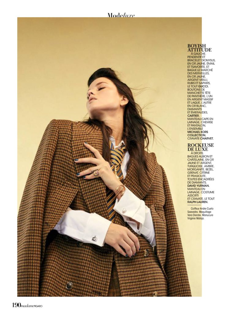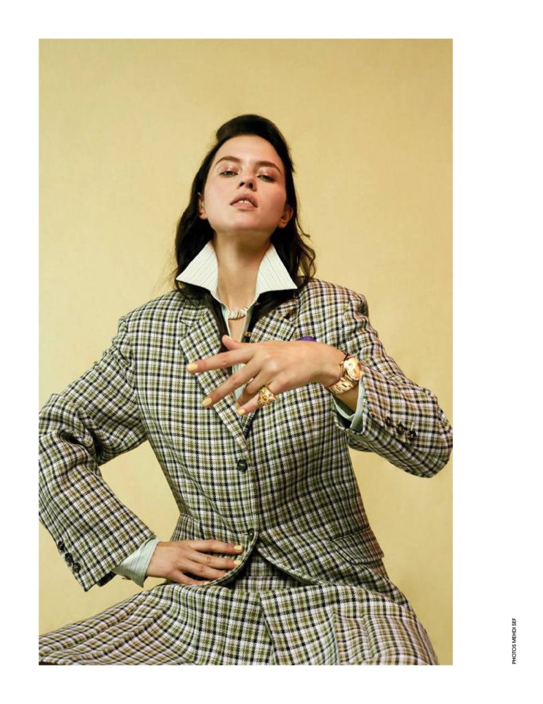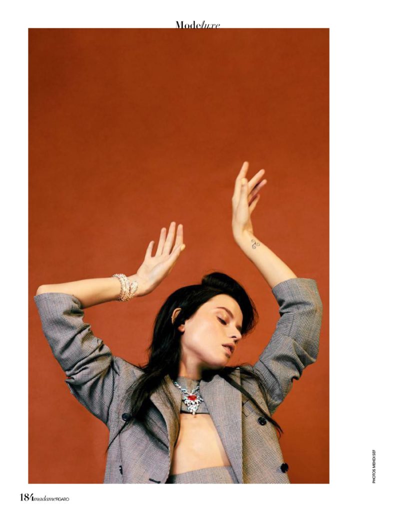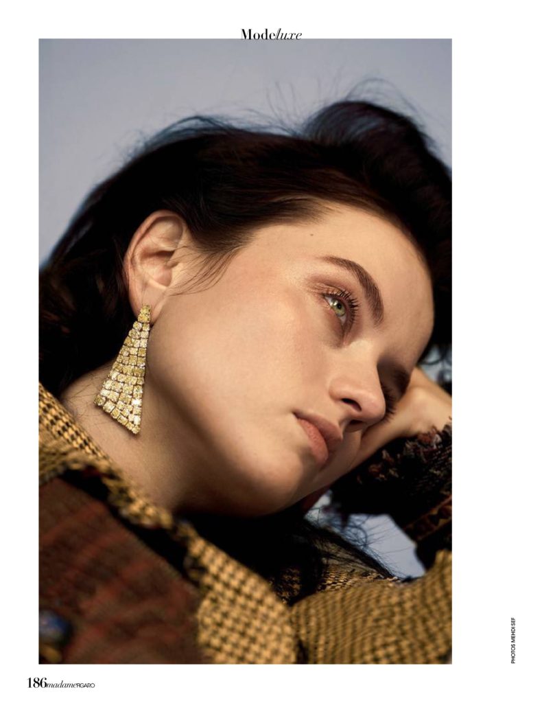 Isis Bataglia, em fotos de Mehdi Sef, styling de Sylvie Clemente, maquiagem de Vera Dierckx e cabelo de Andre Cueto Saavedra, no editorial “Exquis Dandy” da edição desse mês da revista Madame Figaro França.