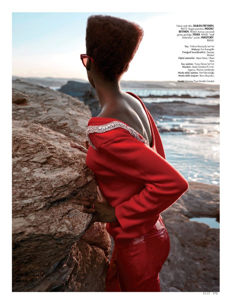 Viviane Oliveira, em fotos de Koray Parlak, styling de Hafize Çeliktürk, maquiagem de Ece Karagülle e cabelo de Yildirim Bozüyük, no editorial “Rafine Iddia” da edição desse mês da revista Elle Turquia.