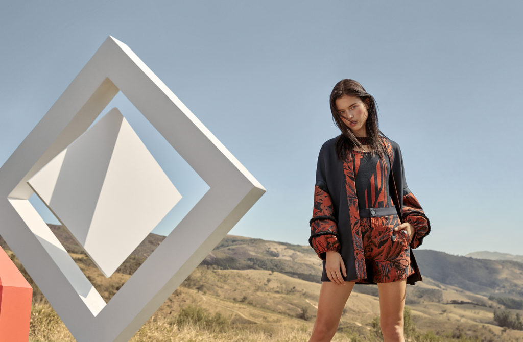 Isis Bataglia, em fotos de Fabio Bartelt (Monster Photo), direção criativa de Rodrigo Kauê, styling de Pedro Sales (M.Lages) e beleza de Amanda Schön (M.Lages), na campanha de Inverno 2018 da grife Maria Valentina.