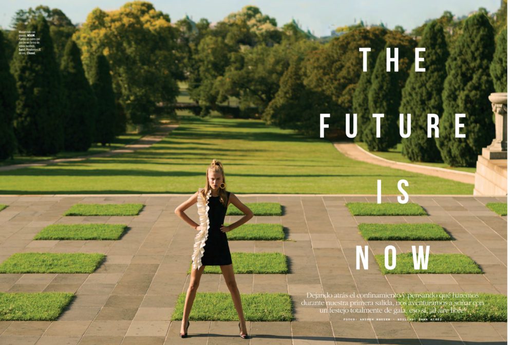 Linda Rosenberg, em fotos de Andrew Nguyen, direção criativa de Nicoal Matear, styling de Emma Acret, maquiagem de Tri-Anh Nguyen e cabelo de Ryan Brown, no editorial “The Future Is Now” da edição desse mês da revista Marie Claire México.