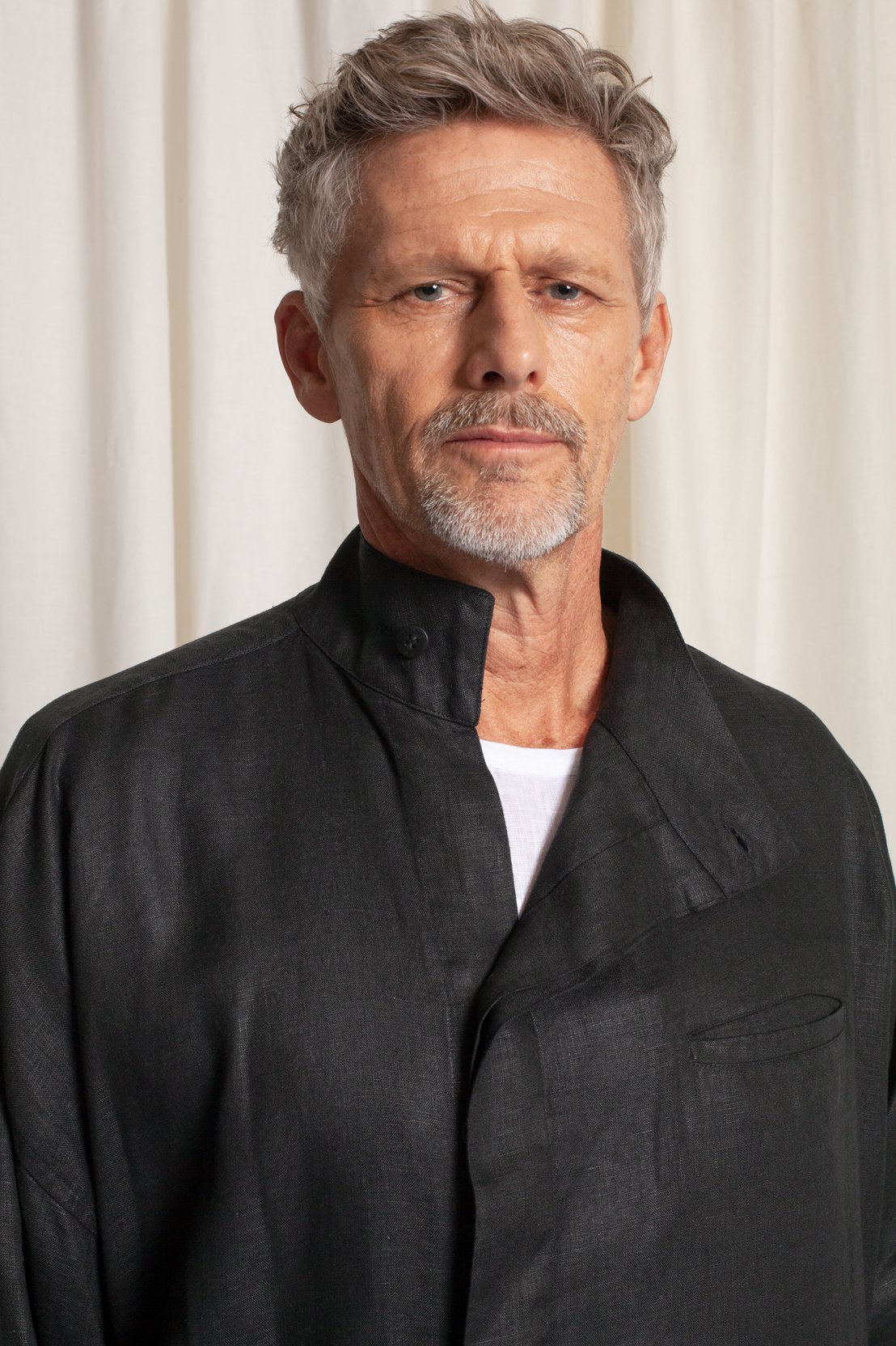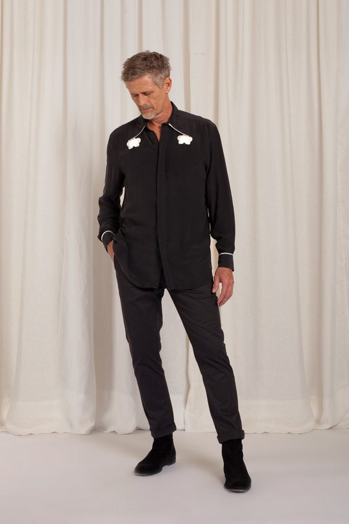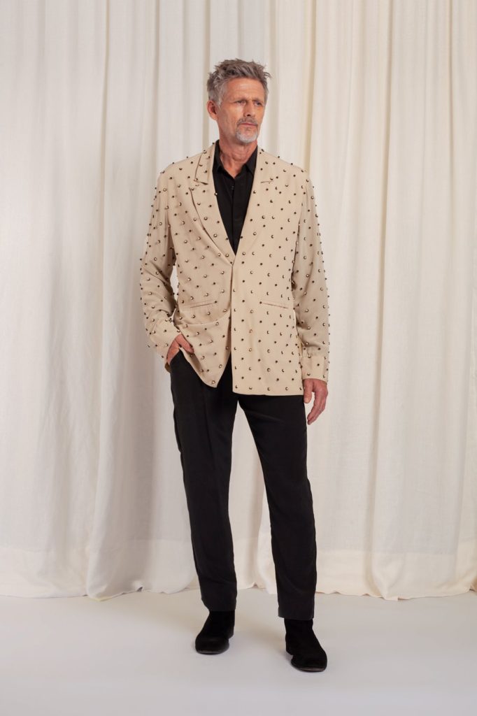 Ricardo Herriot, em fotos de Felipe Diniz e beleza de Carla Biriba (One Stop), no lookbook da coleção Interior da grife Handred.