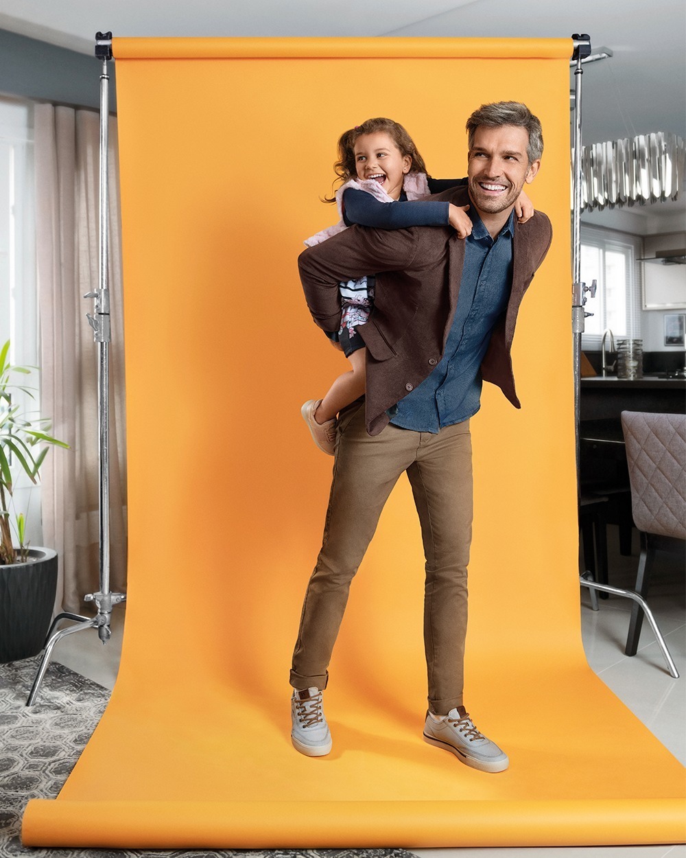 Henrique Klopsch e sua filha Julia, em direção de Mocita Fagundes, direção de fotografia de Lucas Cunha, edição e cor de Lucas Axelrud, produção de aúdio de Sound Thinkers, produção executiva de Mythago e produção de elenco de Fabianne Freitas, na campanha de Dia dos Pais 2020 das Lojas Pompéia.