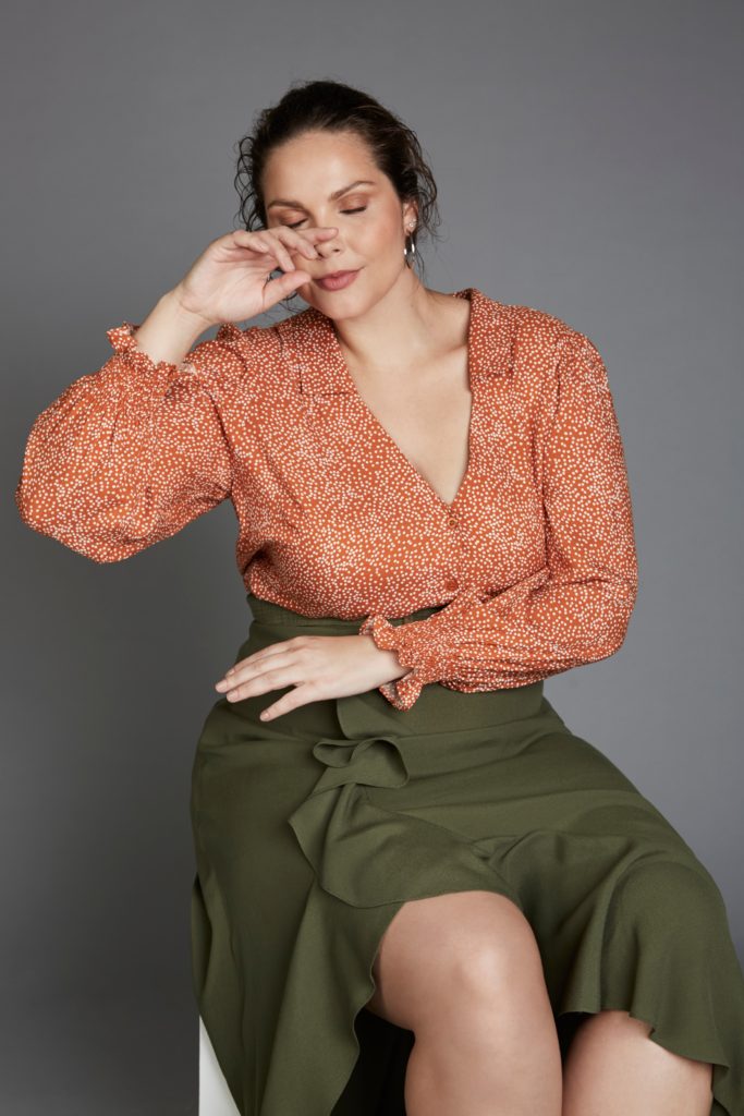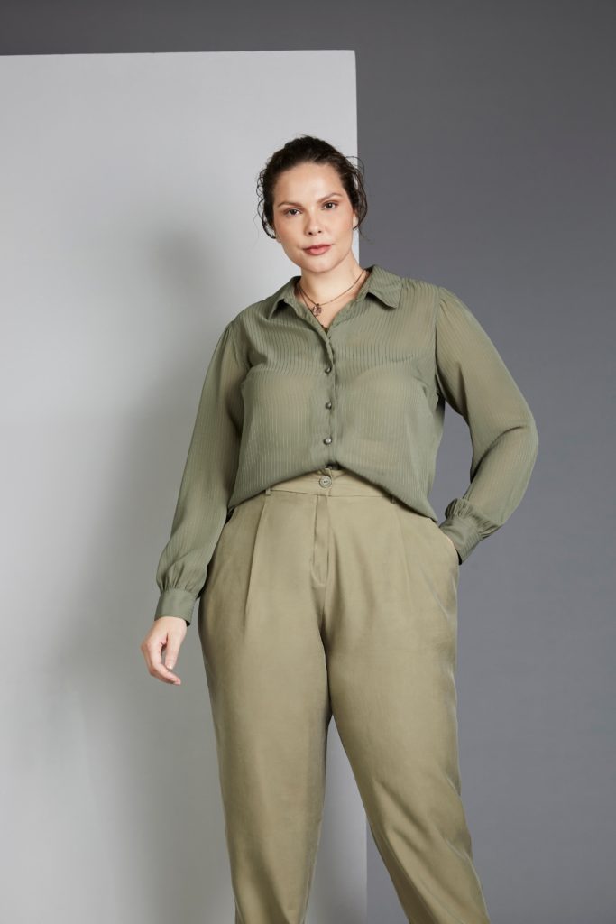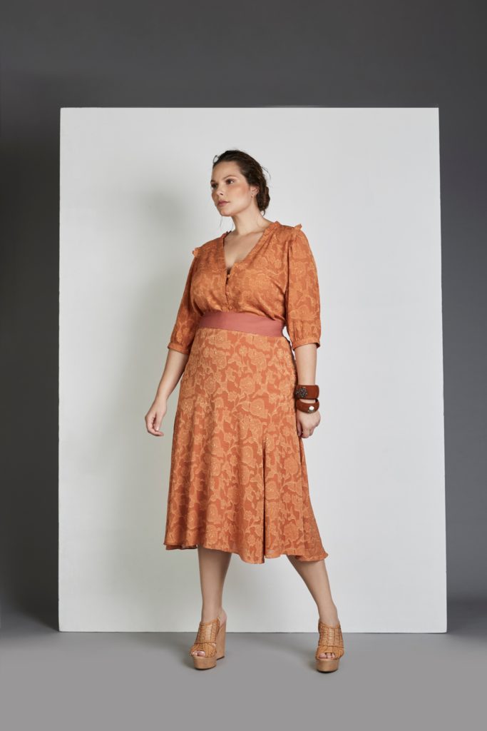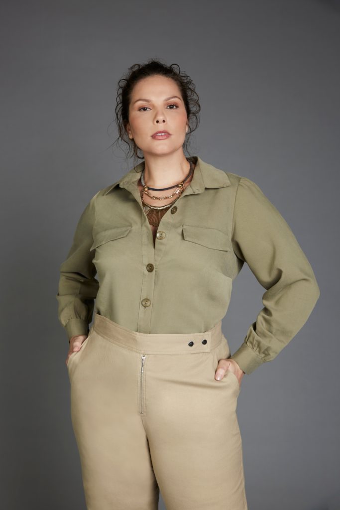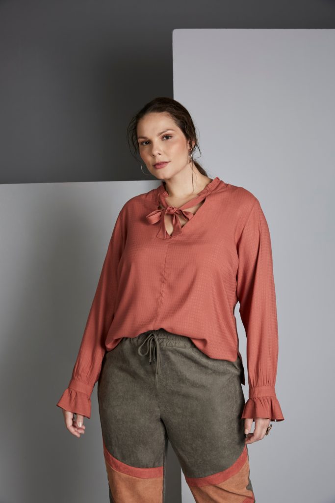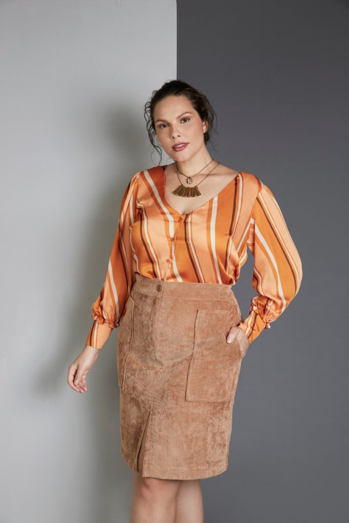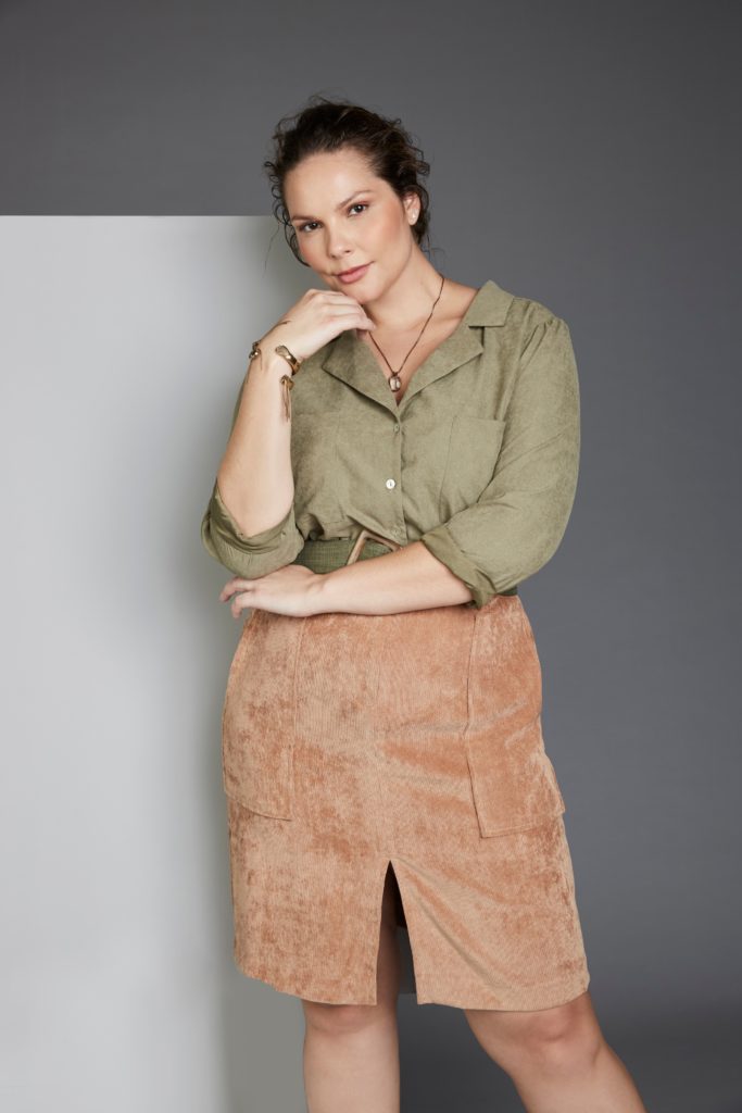 Idaiane Wogel na campanha de Inverno 2020 da coleção City Project da grife Pianeta Plus Size.