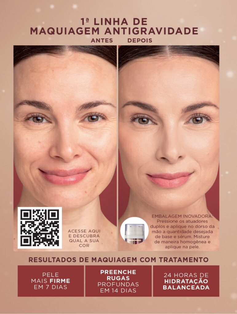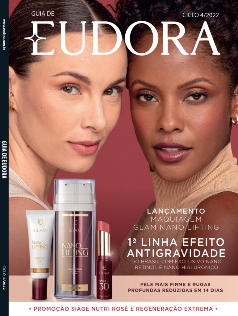 Priscila Flores, em foto de Danilo Borges, styling de Marcia Jorge e beleza de Rafa Capello (Baobá MGT), na campanha da nova linha Glam Nano Lifting da Eudora.
