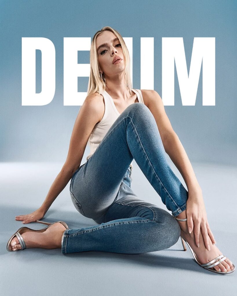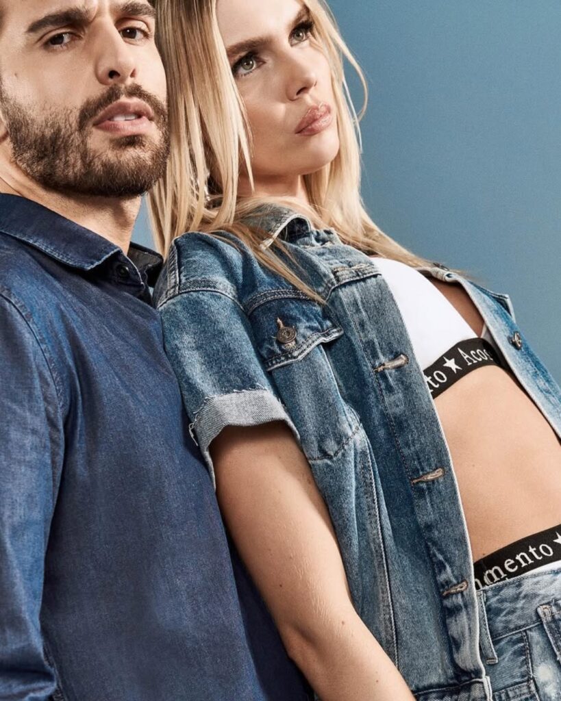 Gabrielle Almeida, em fotos de Thiago Bellini, direção de arte de Giuliana Castilhos e beleza de Carolina Brasil, na campanha de Inverno 2023 da linha denim da grife Acostamento.