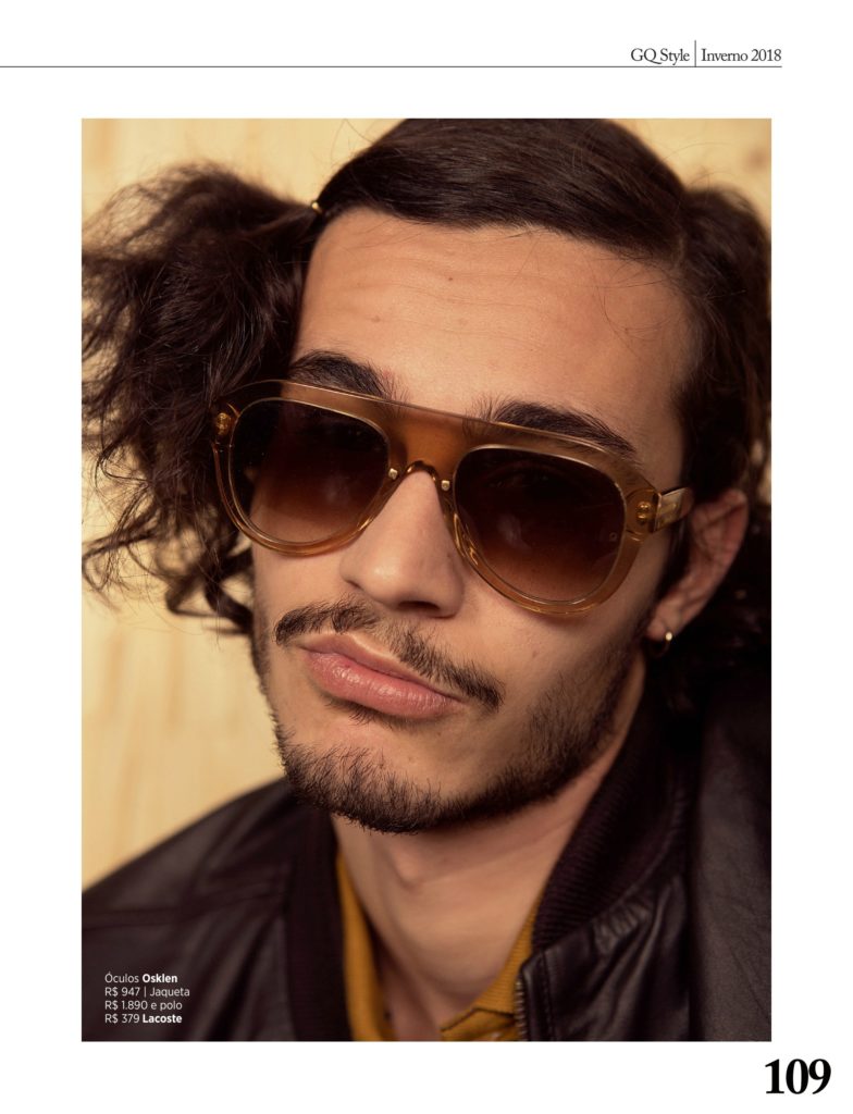 Ariel Pottini, em fotos de Caio Ramalho, styling de Matheus Pallos e beleza de Clara Holtz, no editorial “Lentes de Aumento” da edição de Inverno 2018 da revista GQ Style Brasil.