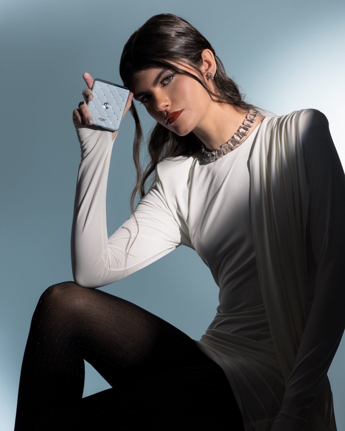 Larissa Battistin e Luana Klauss, em fotos de Isadora Arruda (No Title) e Bruna Sussekind (No Title), vídeo de Jader Chahine, figurino de Malu Costa, beleza de Iris Bittencourt, manicure Thayna Dandara, produção de Craft.e casting de Luna Gandra, na campanha da coleção Brilliant Collection by Swarovski da Motorola.