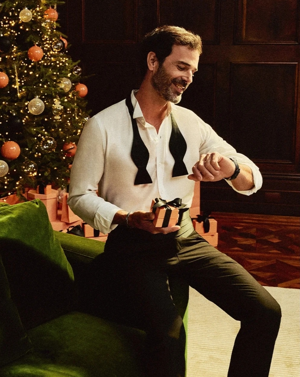 Sergio Rousselet, em fotos de Henrique Falci (Carol Hoshi), vídeo de Oitavoestúdio, direção criativa e produção executiva de Thiago Costa Rego (T.Office), styling de Marcela Belleza, beleza de Cris Biato e cenografia de Ricardo Ishihama (Cenna Visual), na campanha de Natal 2025 da joalheria Vivara.